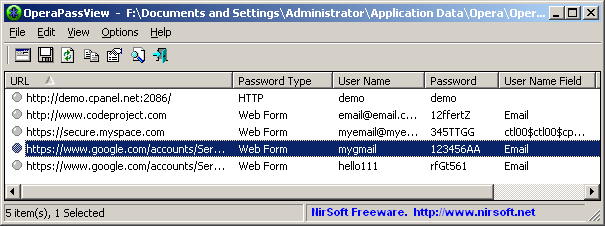 Описание: Если Вы забыли пароли (а может, и не знали), которые вводили и сохраняли в браузерах Internet Explorer, Opera, Firefox или Chrome то найти и показать Вам помогут супер-маленькие утилиты:![]() IE PassView v.1.26 ![]() OperaPassView v.1.05 Русская версия ![]() PasswordFox v.1.26 Русская версия ![]() ChromePass v.1.16 Русская версия Каждая из этих утилит выводит еще и дополнительную информацию о найденном и расшифрованном пароле, а также позволяет вывести и сохранит в файл формата text/html/csv/xml. Все утилиты собраны и сжаты в один самораспаковывающийся архив "4-Utility-Pass-View.exe" Размер файла: 414 Кб Интерфейс (языки): Многоязычный Версия: Разные Система: Windows XP/Vista/7 CRC-суммы MD5: ab10ee678d40102441babb940dabb5ca Автор: Ruterk 07 февраля 2011, 22:25:02 Рейтинг: |