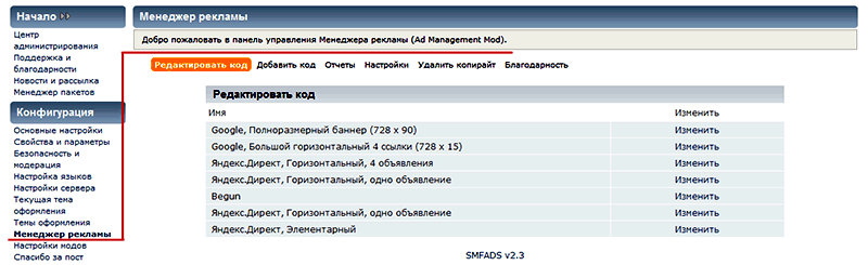 Описание: Специальный мод (плагин) для форума SMF, который легко позволяет вставить рекламный код (типа AdSense, Яндекс.Директ) в различные разделы форума, а также вести учет переходов и кликов. ![]() Автор: SMFHacks.com Team Размер: 33 Кб Версия: 3.1 для SMF 2.0 Язык: Русский Протестировано на системе: SMF 2.0.4 Ключевые слова (разделяются пробелом): Мод, Плагин, Ad Management mod, Русская версия, Автор: Ruterk 09 июня 2013, 19:17:44 Рейтинг: |